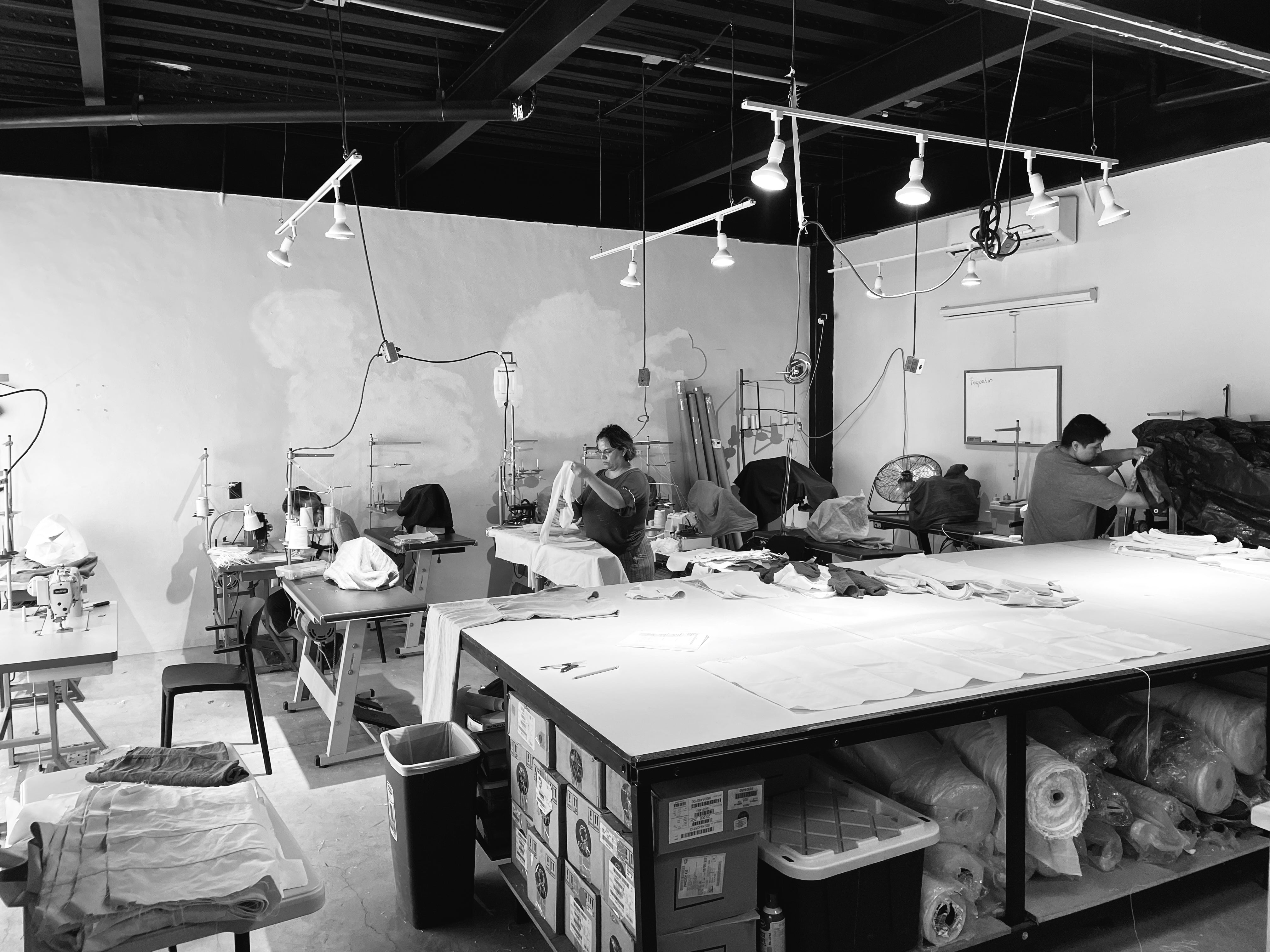 En 2018, lanzamos nuestra línea de ropa. Nuestro mentor y buenos amigos la producían en su pequeño taller en Irapuato, Guanajuato, México. Tuvimos un par de buenos años, pero como la mayoría de las cosas, la pandemia nos obligó a tomar algunas decisiones difíciles, ya que el taller se vio obligado a cerrar sus puertas. Después de algunas conversaciones y las bendiciones de nuestros amigos, alquilamos apresuradamente un espacio de estudio disponible y trasladamos las máquinas a Bahía de Banderas, a solo unas pocas millas de la tienda. Después de algunos intentos fallidos, muchas conversaciones a altas horas de la noche y aprender los trucos de producir tu propia línea de ropa, nos acomodamos y nuestro taller se ha convertido en un lugar de experimentación y rigor donde el diseño y la costura se unen en una colaboración informada. No hay nada como la sensación de ver surgir nuevos estilos del taller, que alguna vez fueron solo un puñado de ideas, telas y bobinas de hilo, ahora son piezas completamente realizadas. Es una delicia, a veces estresante, pero siempre un proceso gratificante.