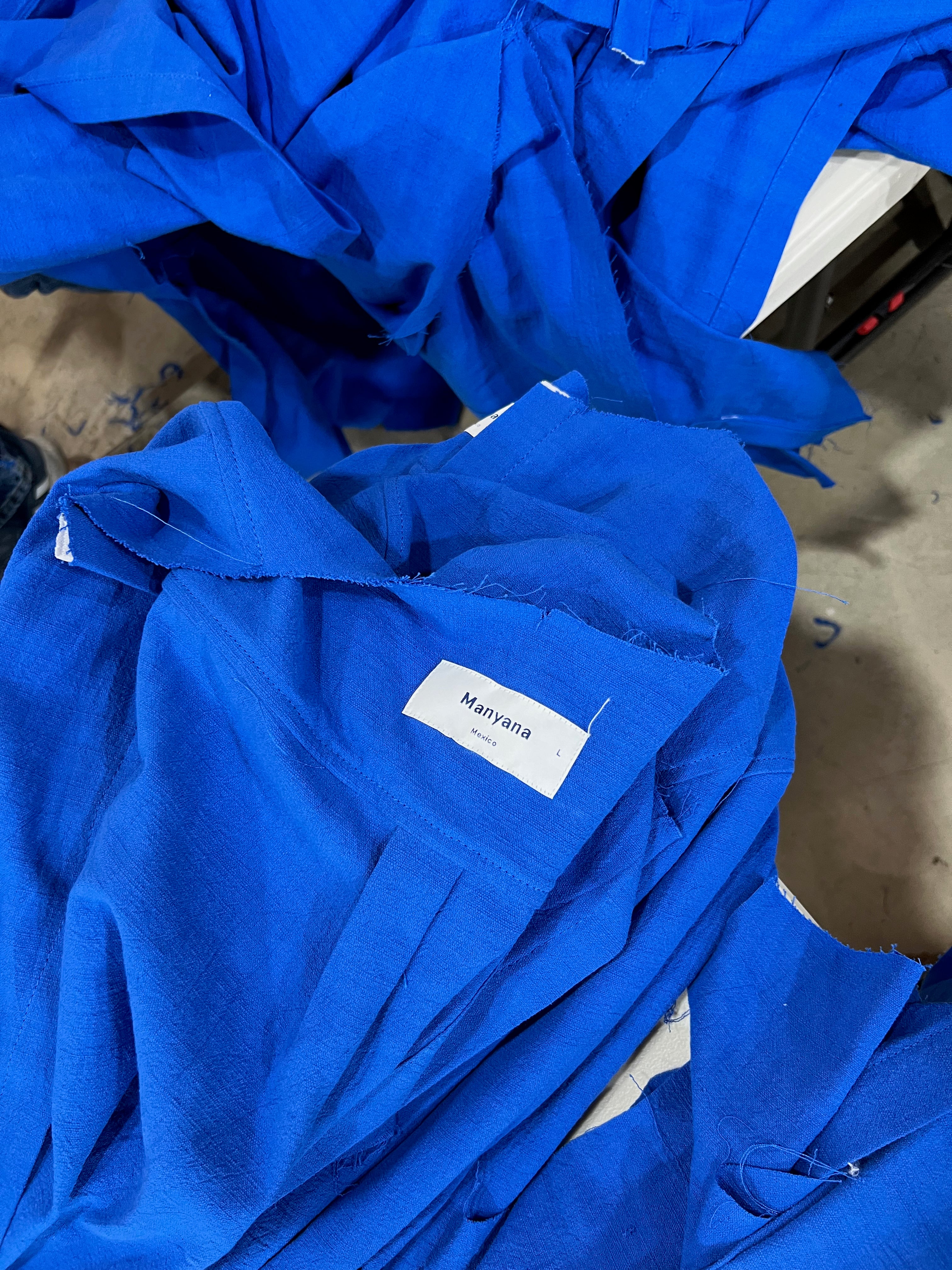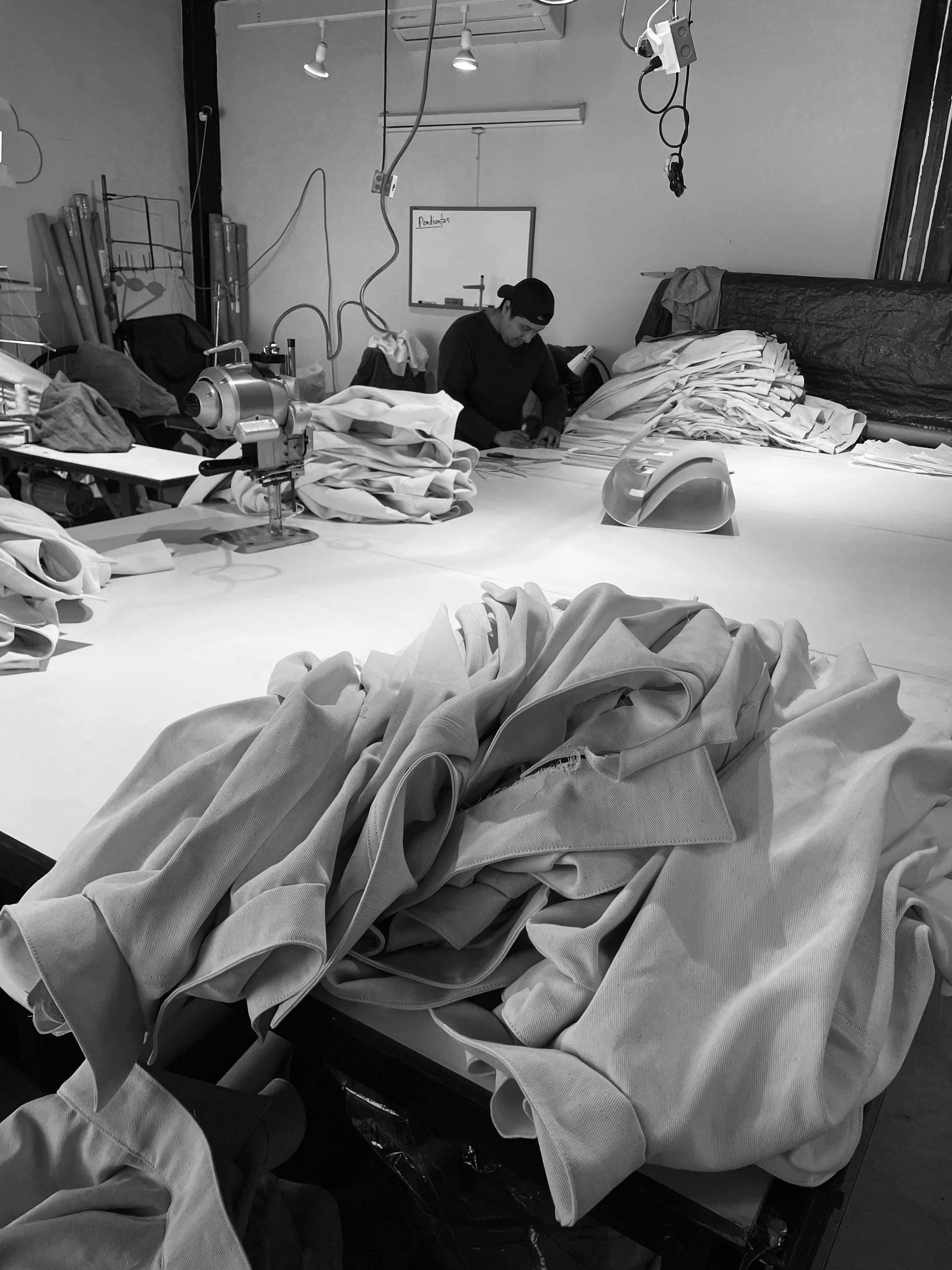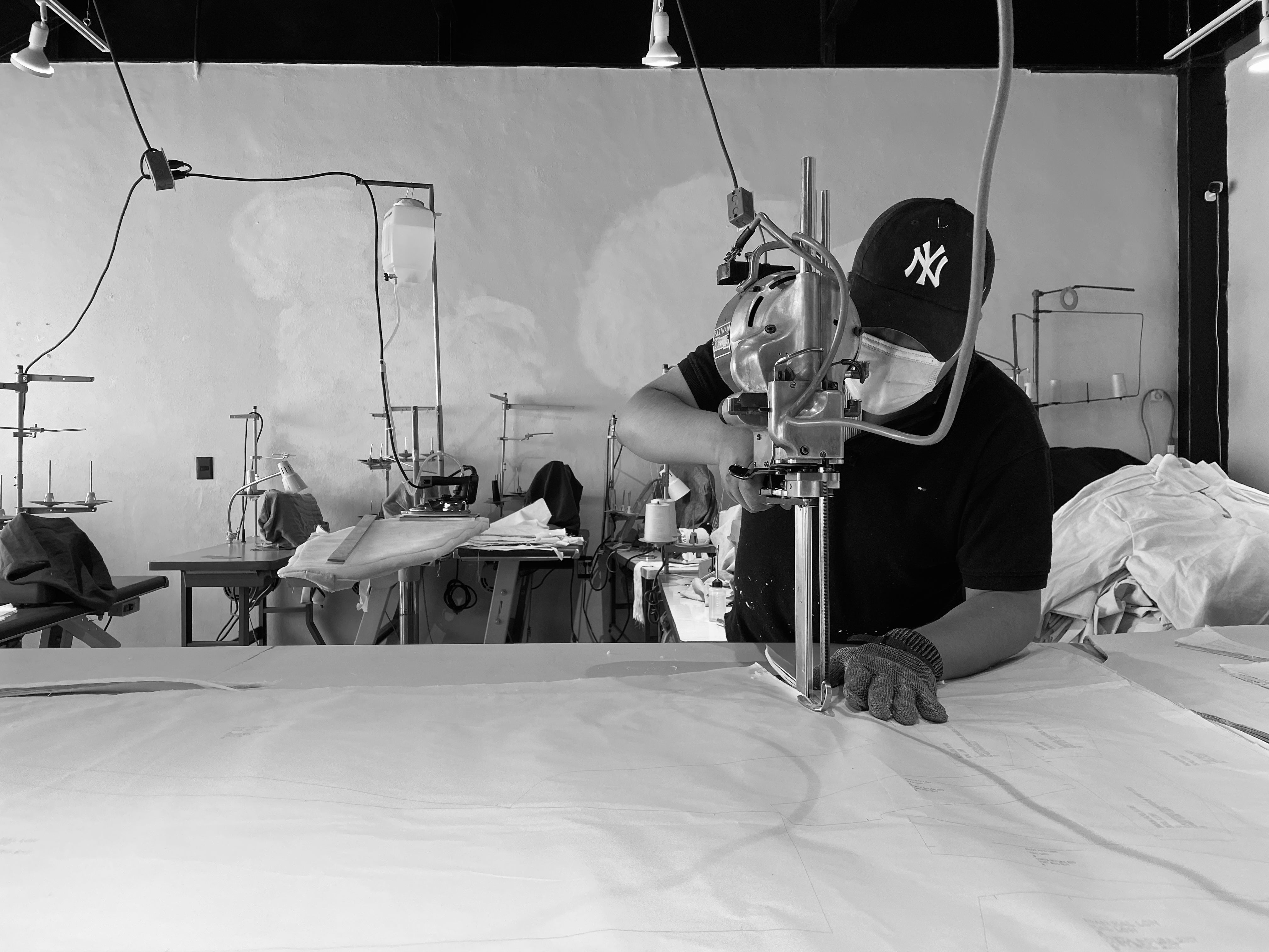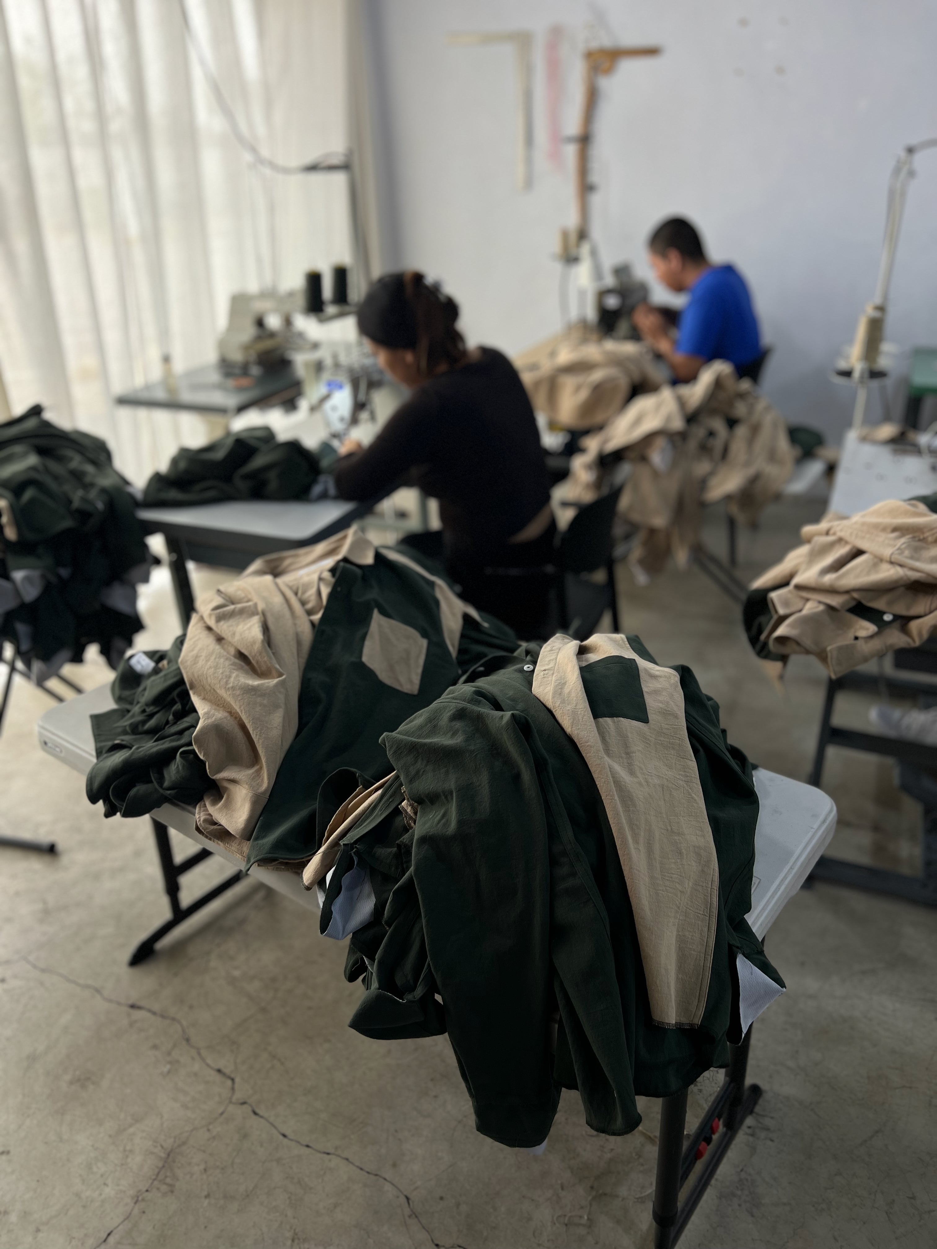 En 2018, lanzamos nuestra línea de ropa. Nuestro mentor y buenos amigos la producían en su pequeño taller en Irapuato, Guanajuato, México. Tuvimos un par de buenos años, pero como la mayoría de las cosas, la pandemia nos obligó a tomar algunas decisiones difíciles, ya que el taller se vio obligado a cerrar sus puertas. Después de algunas conversaciones y las bendiciones de nuestros amigos, alquilamos apresuradamente un espacio de estudio disponible y trasladamos las máquinas a Bahía de Banderas, a solo unas pocas millas de la tienda. Después de algunos intentos fallidos, muchas conversaciones a altas horas de la noche y aprender los trucos de producir tu propia línea de ropa, nos acomodamos y nuestro taller se ha convertido en un lugar de experimentación y rigor donde el diseño y la costura se unen en una colaboración informada. No hay nada como la sensación de ver surgir nuevos estilos del taller, que alguna vez fueron solo un puñado de ideas, telas y bobinas de hilo, ahora son piezas completamente realizadas. Es una delicia, a veces estresante, pero siempre un proceso gratificante.