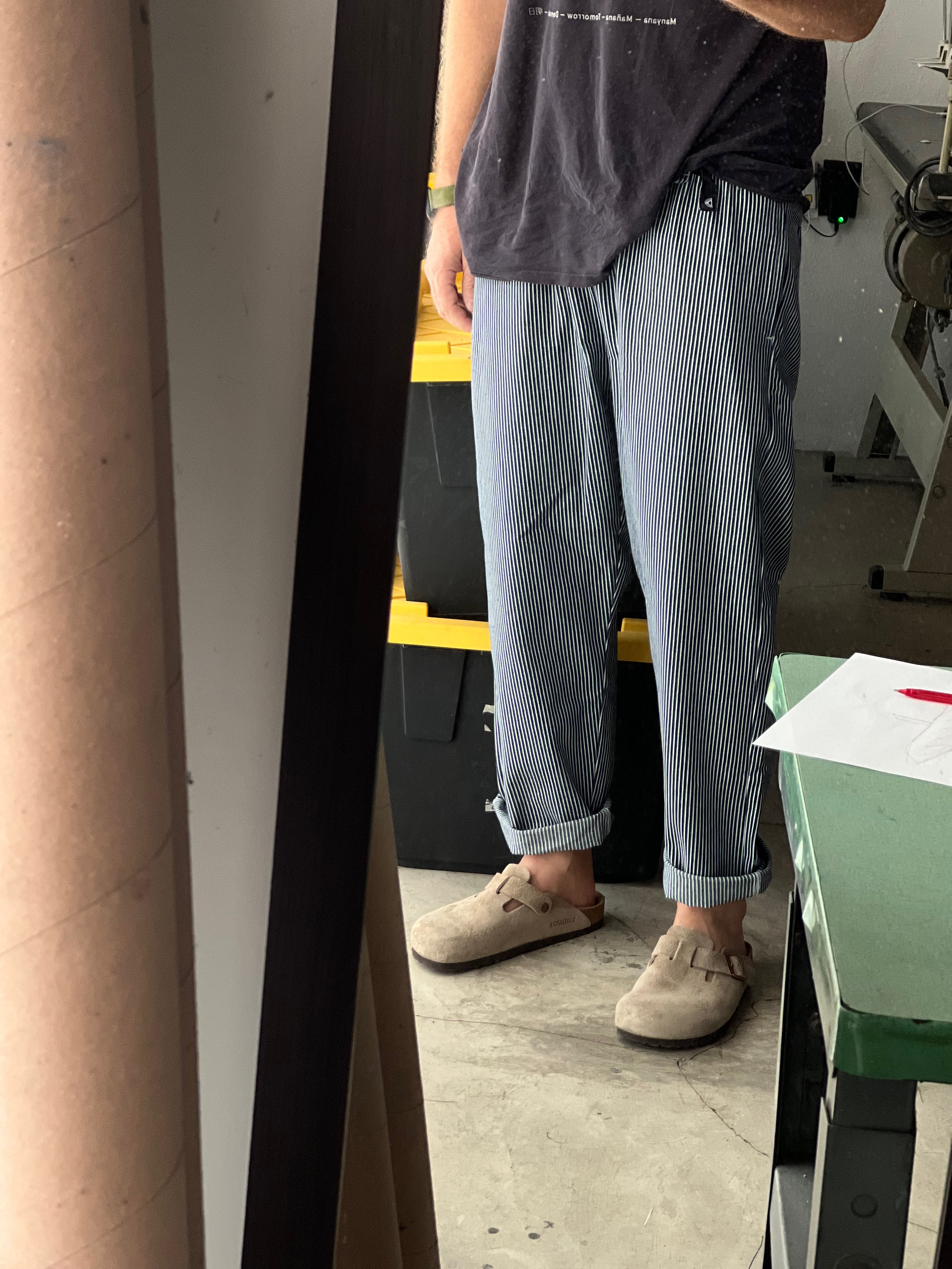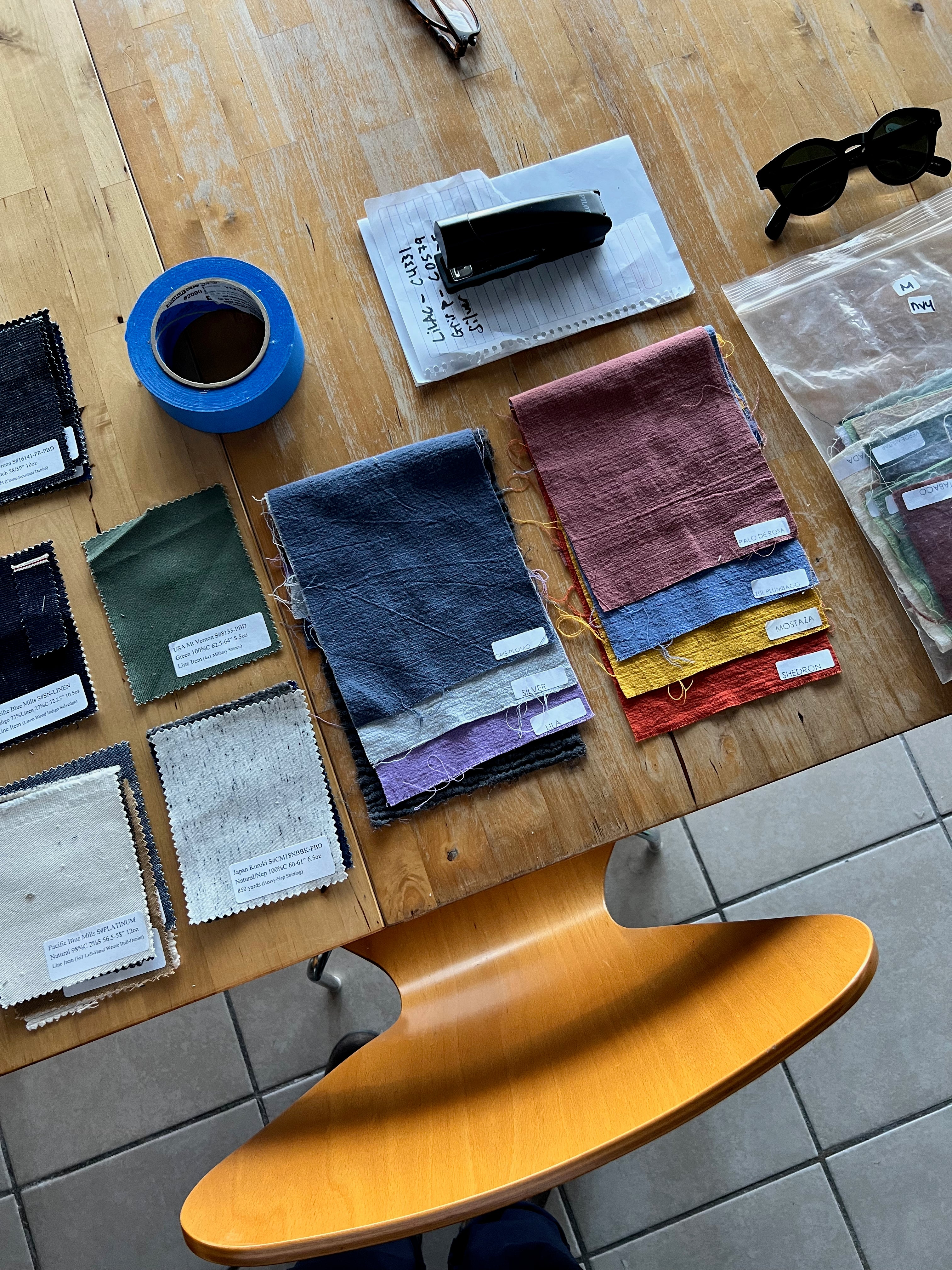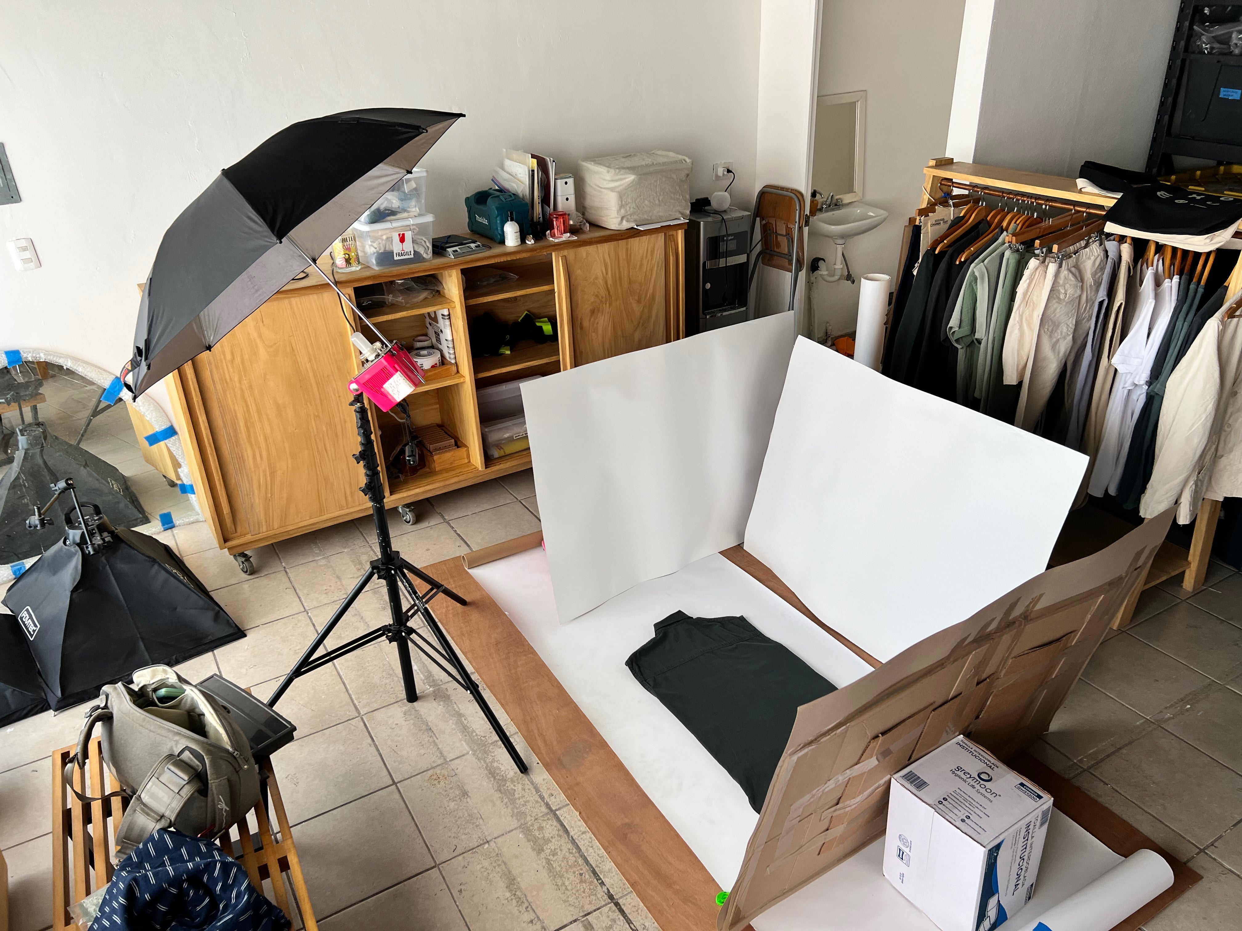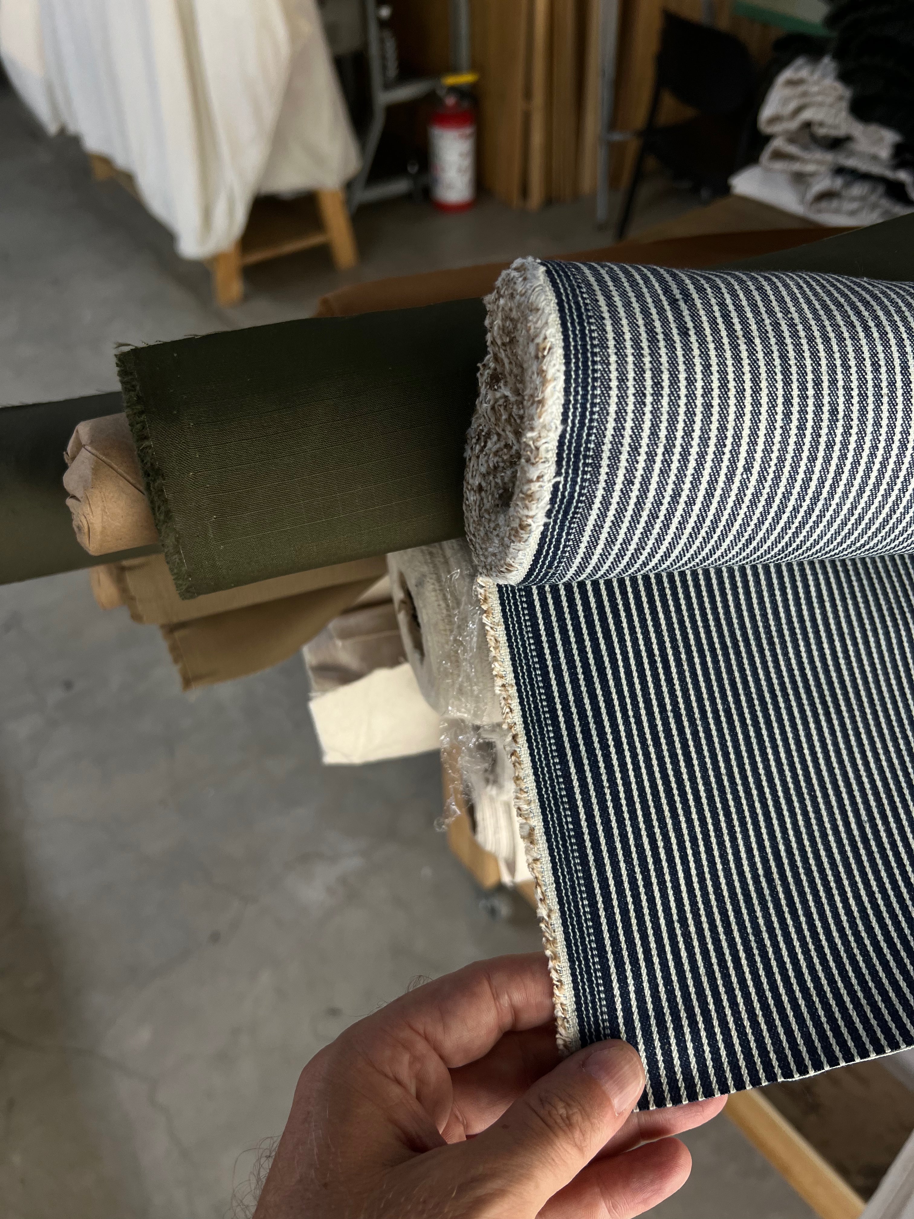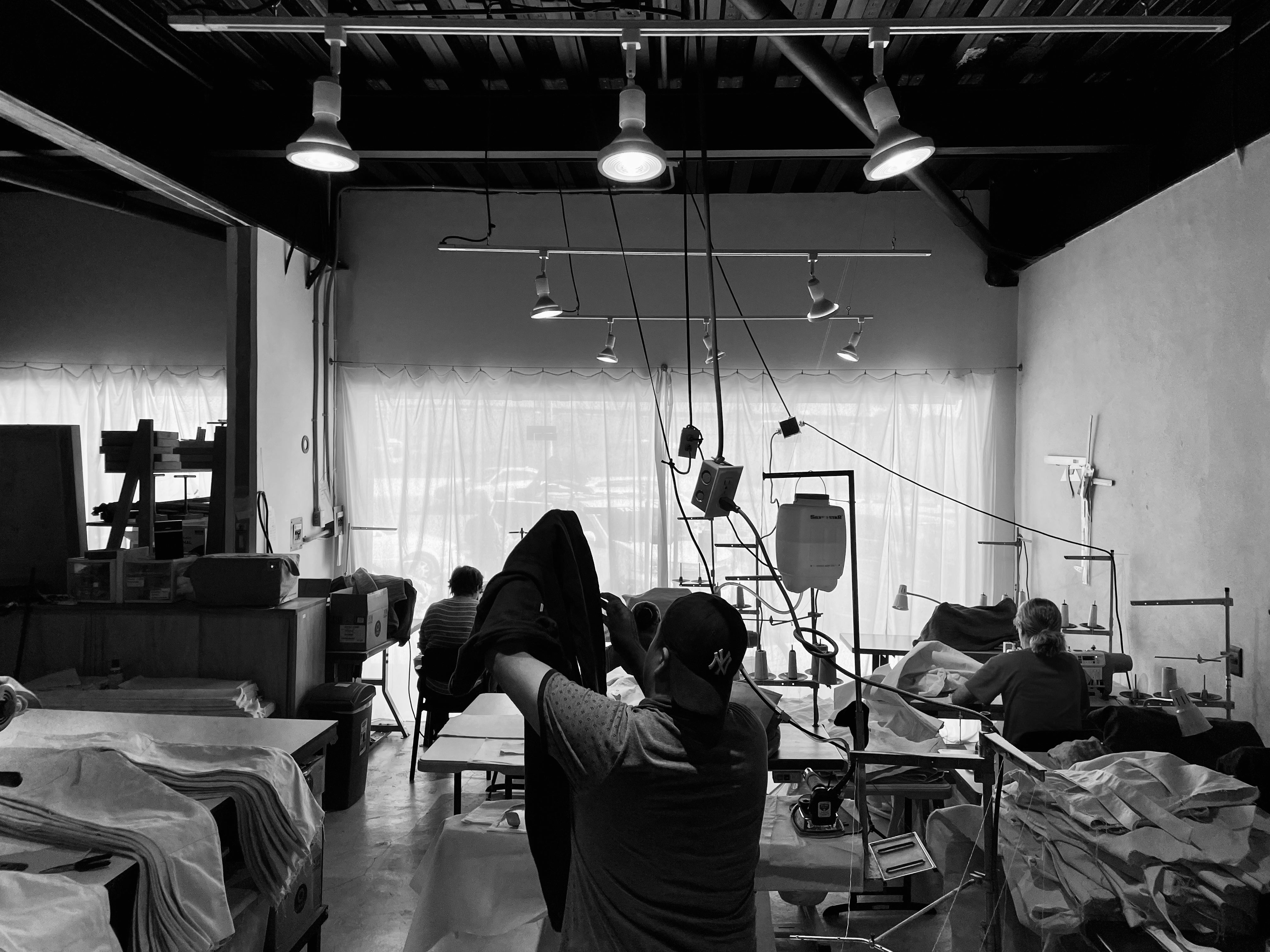 En 2018, lanzamos nuestra línea de ropa. Nuestro mentor y buenos amigos la producían en su pequeño taller en Irapuato, Guanajuato, México. Tuvimos un par de buenos años, pero como la mayoría de las cosas, la pandemia nos obligó a tomar algunas decisiones difíciles, ya que el taller se vio obligado a cerrar sus puertas. Después de algunas conversaciones y las bendiciones de nuestros amigos, alquilamos apresuradamente un espacio de estudio disponible y trasladamos las máquinas a Bahía de Banderas, a solo unas pocas millas de la tienda. Después de algunos intentos fallidos, muchas conversaciones a altas horas de la noche y aprender los trucos de producir tu propia línea de ropa, nos acomodamos y nuestro taller se ha convertido en un lugar de experimentación y rigor donde el diseño y la costura se unen en una colaboración informada. No hay nada como la sensación de ver surgir nuevos estilos del taller, que alguna vez fueron solo un puñado de ideas, telas y bobinas de hilo, ahora son piezas completamente realizadas. Es una delicia, a veces estresante, pero siempre un proceso gratificante.